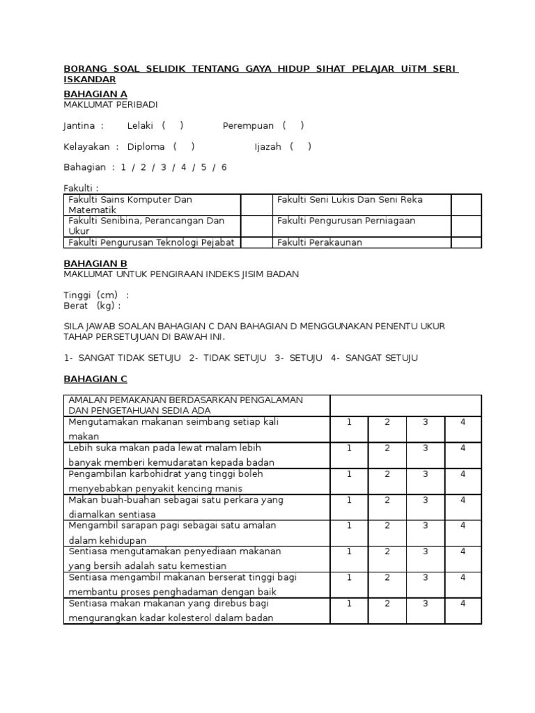Borang Soal Selidik Tentang Gaya Hidup Sihat Pdf