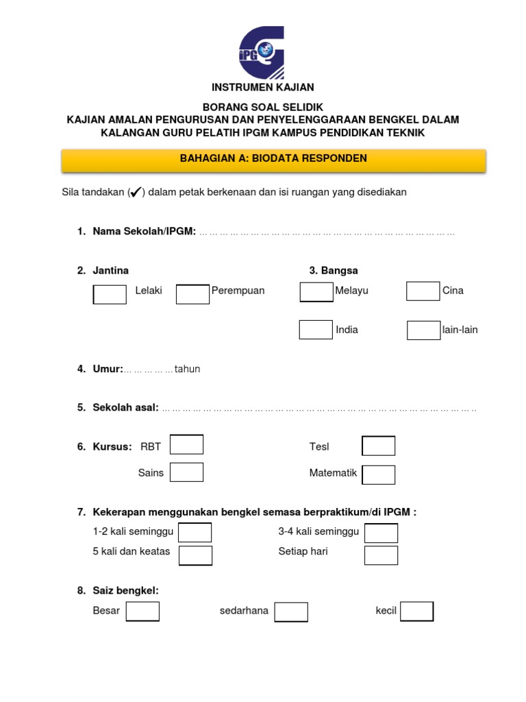 Doc Borang Soal Selidik Kerja Kursus Pengajian Am Kod Mata Pelajaran 900 4 Bahagian A Data Demografi Responden Chrys Annie Rayvious Academia Edu